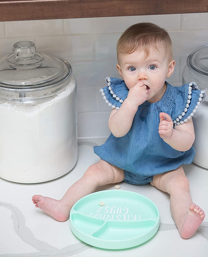 Our silicone suction plate is divided into 3 sections for well balanced meals, promotes good eating habits and appropriate portions. The plate suctions to any table or highchair tray to keep meals in place.