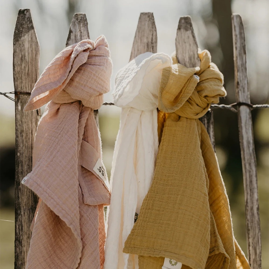 Our soft muslin cloths are made of 100% organic cotton and just keeps on getting softer for each wash.