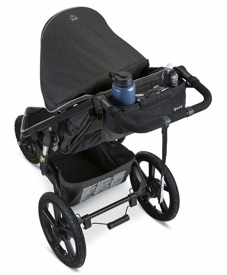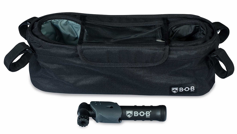 Everything you need is now within your reach: keep stroller tires inflated, beverages insulated and items organized. A convenient on-the-go tire pump is included, compatible with all BOB pneumatic stroller tires. Beverages stay cold or warm with insulated bottle holders, and phones, snacks & other essentials stay organized in the substantial center pocket. Compatible with all BOB single strollers.