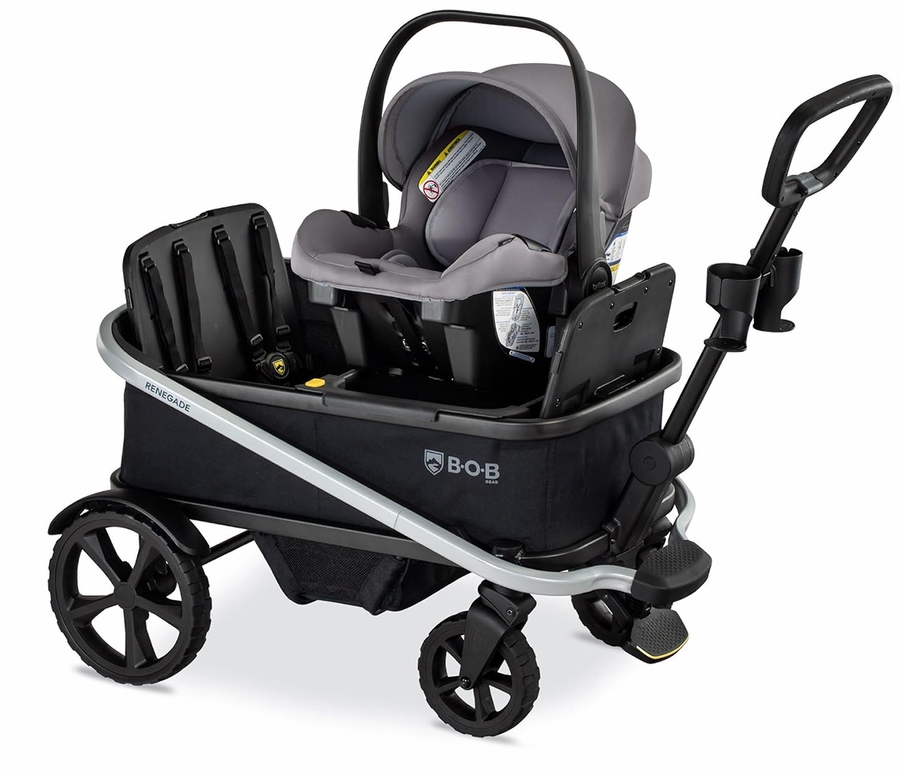 Bring your little adventurer along for the ride! This adapter allows you to easily connect your infant car seat to your BOB Gear Renegade Wagon. Place it facing either side of the wagon to give baby the best view.