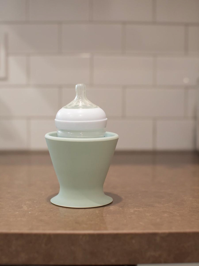 Now you can prepare bottles with just one hand! The bökee is the first and only hand free bottle prep accessory!