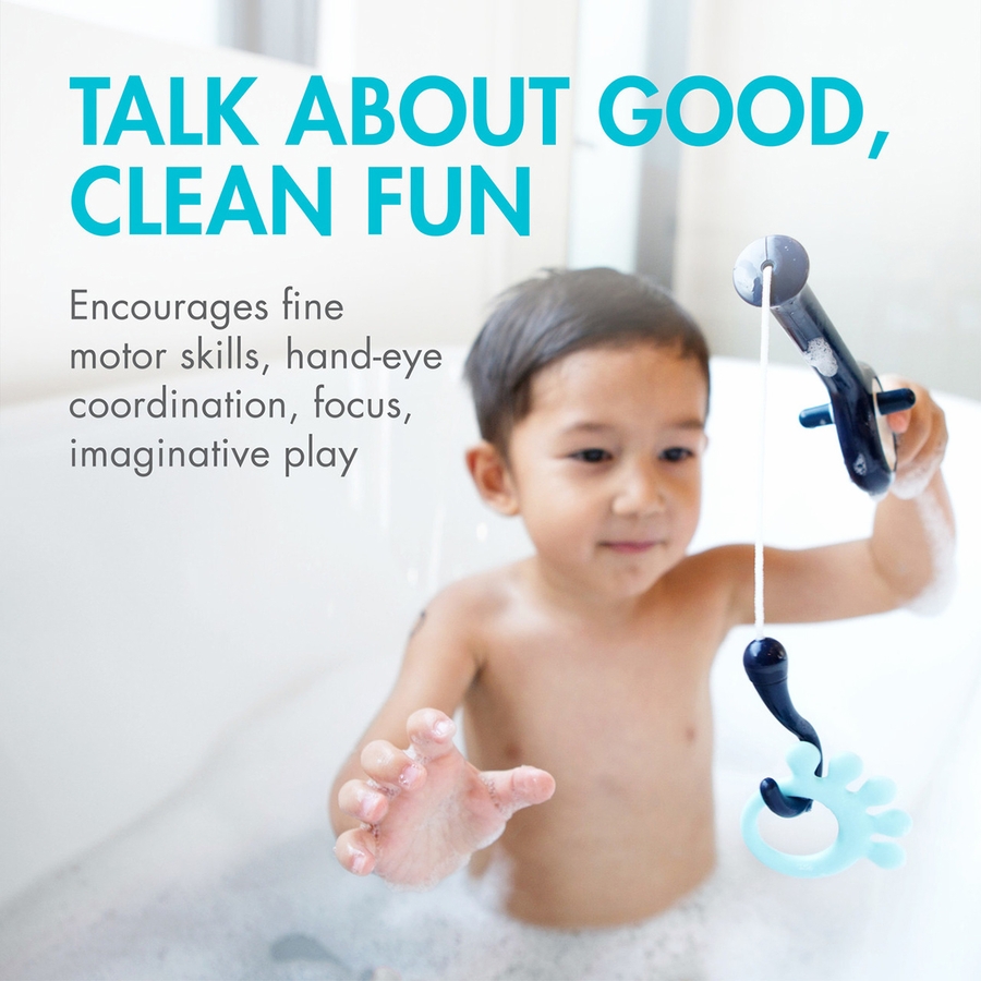One try and they'll be hooked. Need a little bath-time bait? CAST is so much fun they won't want to leave the tub. The working pole features fishing line that reels in and weighted hooks they can use to snag whatever's floating by. It even comes with three floating sea creatures. Please catch and release.
