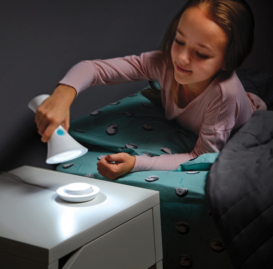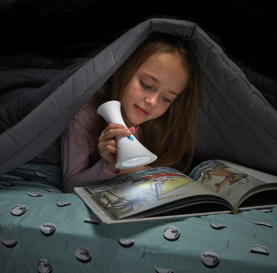 Forget ghoulies and ghosties and long-leggedy beasties, nothing will go bump in the night here. That’s because Gleam keeps the bedroom safe and sound with magical starry skies projected in a spectrum of colors. Want to check under the bed for good measure? It automatically turns into a flashlight when removed from its base. Sweet dreams, little ones.