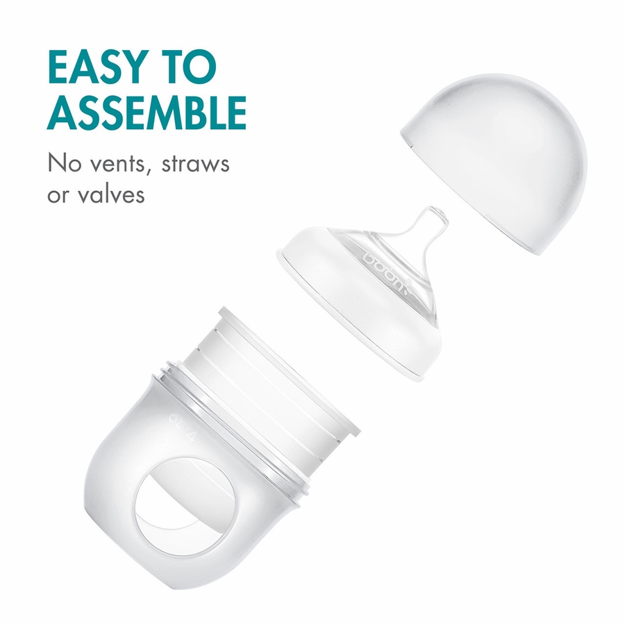 Innovation. Suck on that. It’s the best thing to happen to feeding since nipples. The revolutionary air-free feeding design of our NURSH™ Silicone Pouch Bottle features a 100% silicone pouch that collapses as your little one drinks, squeezing out the nasty gas-inducing air that causes colic. No straws, vents or valves here—so it’s a snap to clean and assemble. The silicone can even be boiled, sterilized, microwaved, and frozen.