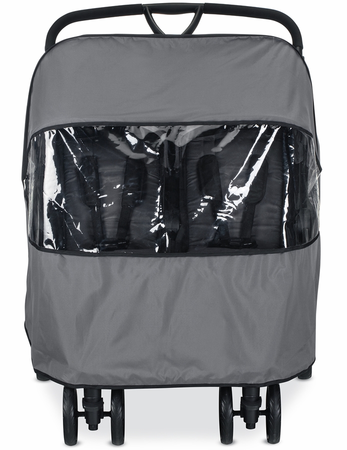 The B-Lively Double Rain Cover is custom-designed to fit over the canopies of both seats, protecting both children from wind and rain. Openings on both sides allow you to access one child at a time while the other seat remains covered. The rain cover is easily secured with hook and loop attachments.