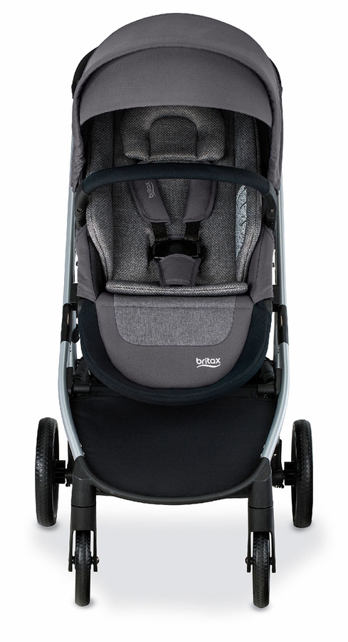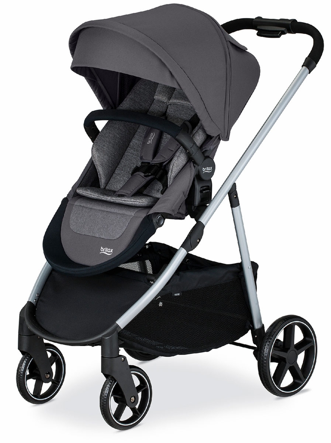 The Britax Grove™ Modular Stroller is built to elevate your everyday routine as a parent. With thoughtful extras like a stroller bumper bar for added comfort, an expandable canopy for more coverage, mesh windows for extra ventilation, and all-wheel suspension for a smoother ride. Made for children up to 50 pounds, this baby stroller features six different strolling positions—including both parent-facing and forward-facing—so your child can look up at you or out to the world. The included washable CozyFit™ insert allows babies as small as 10 pounds to ride in this stroller when the seat is fully reclined. This Britax stroller is also compatible with select infant car seats (sold separately). Made with StayClean® and SafeWash® fabrics, the stroller liner and head pad resists stains, moisture and odor. It is also safe to machine wash and dry. The UPF 50+ canopy has a flip-down sun visor and expandable mesh panel for comfortable coverage. A peek-a-boo window with quiet magnetic closure lets you keep a close eye on your little one as you stroll. With an extra-large cargo basket and thoughtfully-placed pockets, this toddler stroller gives you easy access to items, while keeping personal belongings secure and out of sight. The one-hand compact fold lets you pack up quickly while keeping your other hand free for multi-tasking. Plus, this durable and portable stroller is lightweight, so you can lift it in and out of your car with ease.