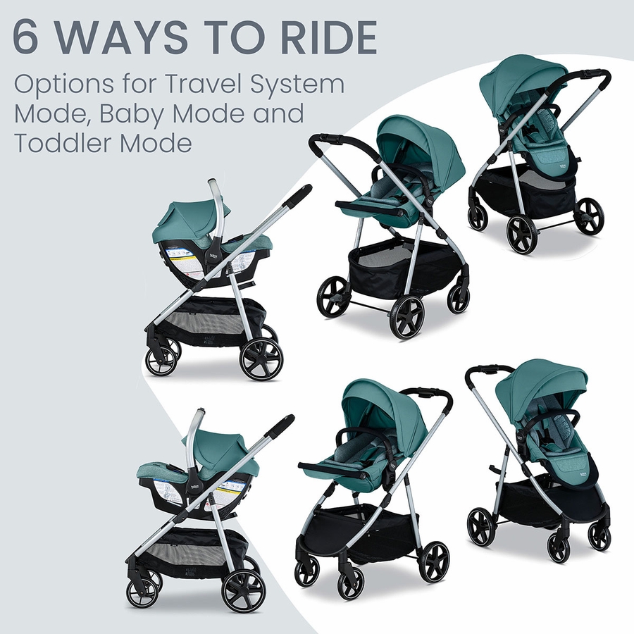 Make every moment effortless with the Britax Willow Grove SC baby travel system. This infant car seat and stroller combo includes the Britax Willow SC infant car seat, Alpine car seat base and Grove modular stroller. First ride jitters? Gone. Britax is the only brand with ClickTight® technology so you know it can be installed securely on the first ride and beyond. Made for multitasking, this Britax infant car seat features an aluminum carry handle that easily adjusts with one hand to keep the other hand free. The RightSize™ system provides adjustment points at the hips, shoulders and between the legs to help you find the perfect fit from the start. When it's time to cruise, attach the car seat to the Grove baby stroller and take on the town. Made for children up to 50 lbs, the Grove baby stroller features 6 different strolling positions—including both parent-facing and forward-facing—so your child can look up at you or out to the world. The included washable CozyFit™ insert allows babies as small as 10 lbs to ride in this toddler stroller when the seat is fully reclined. The one-step fold lets you pack up and go with trunk space to spare. The Grove stroller comes with an extra-large cargo basket plus 5 additional pockets for valuables, drinks and your little one's must-haves. Fabrics are naturally flame retardant with no added FR chemicals. The Willow Grove SC infant travel system pairs trusted car seat safety with a fully loaded stroller to give you the best of both worlds.