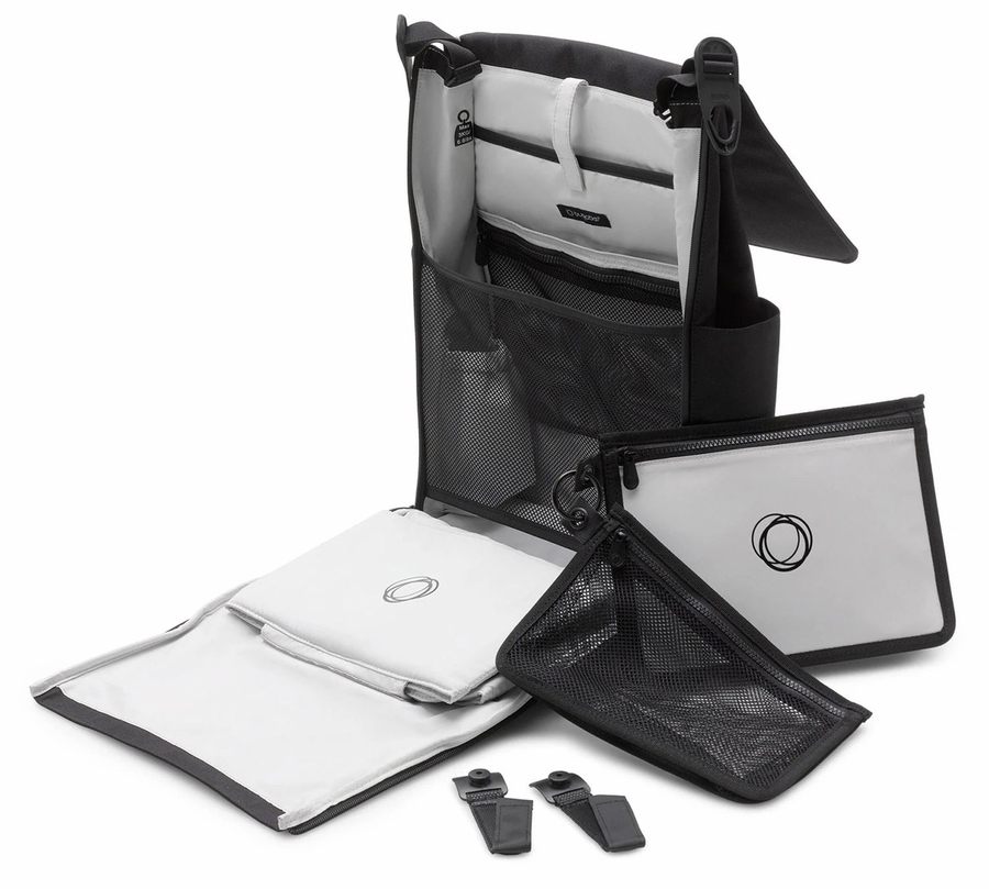 • Integrated stroller attachment hooks for 1-hand attachment to any Bugaboo stroller, except Bugaboo Ant.