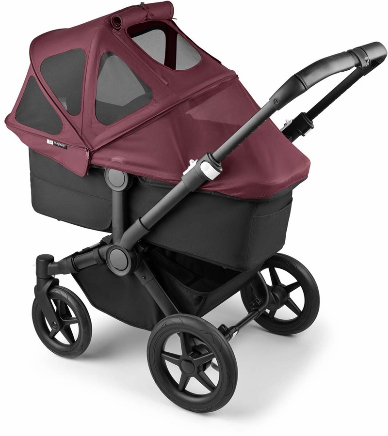 The multi-functional bugaboo donkey breezy sun canopy provides sun protection, head-to-toe sun mosquito protection and extra ventilation on hot sunny days. Highly durable fabric is water- & oil- repellent and provides UPF 50+ (excl.integrated mesh panels) while fine mesh lets cool breezes through. A zip-up window allows extra ventilation and easy access to your child. Position the canopy to ensure your child is protected throughout the day. Need extra shade? Our integrated pop-out sunshade has you covered.