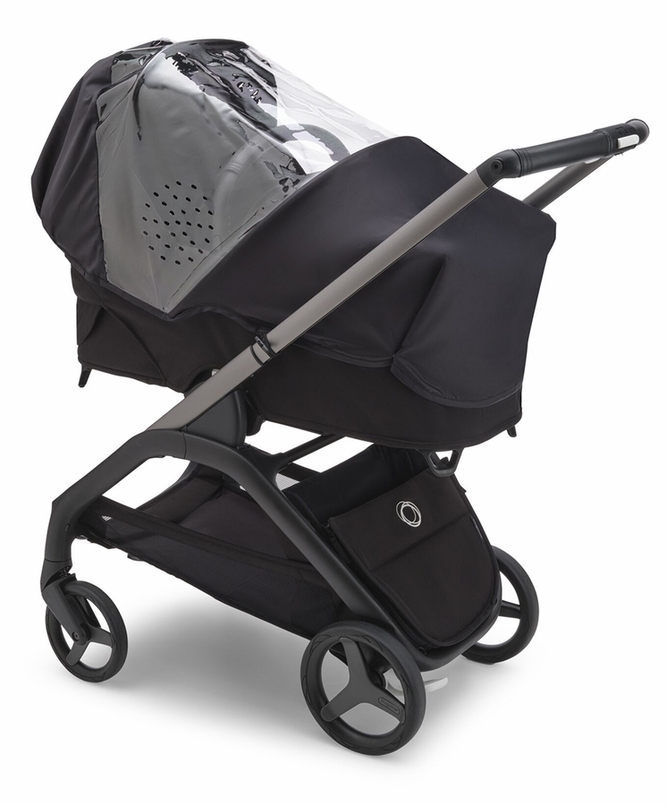 Always be prepared for unexpected weather changes with the Bugaboo Dragonfly rain cover. Easy to install, this stroller rain cover is also compact so that you can take it with you wherever you go. The transparent surface is perfect for keeping an eye on your tiny co-pilot while they keep discovering. This rain cover fits the Dragonfly seat or bassinet.