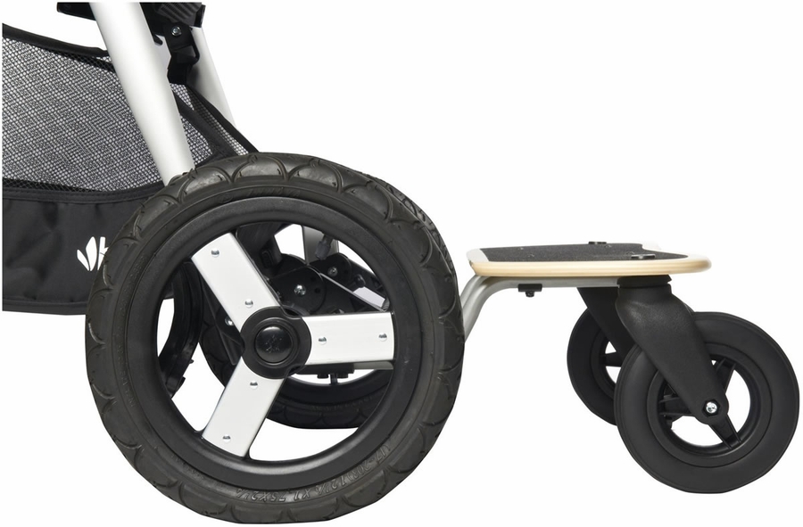 The Bumbleride Mini Board, a skateboard-style stand that attaches to the back of the stroller, offers a fun and dynamic transitional tool for growing toddlers, while also extending the lifespan and relevance of the Bumbleride stroller. Compatible with the Bumbleride Indie, Indie 4 and Indie Twin strollers, the Mini Board features a slip-resistant deck to stabilize toddlers' toes as they ride in the standing position, holding on to the handlebar; two durable swivel wheels for maximum maneuverability and tracking; and an easy-to-install clamp attachment system.