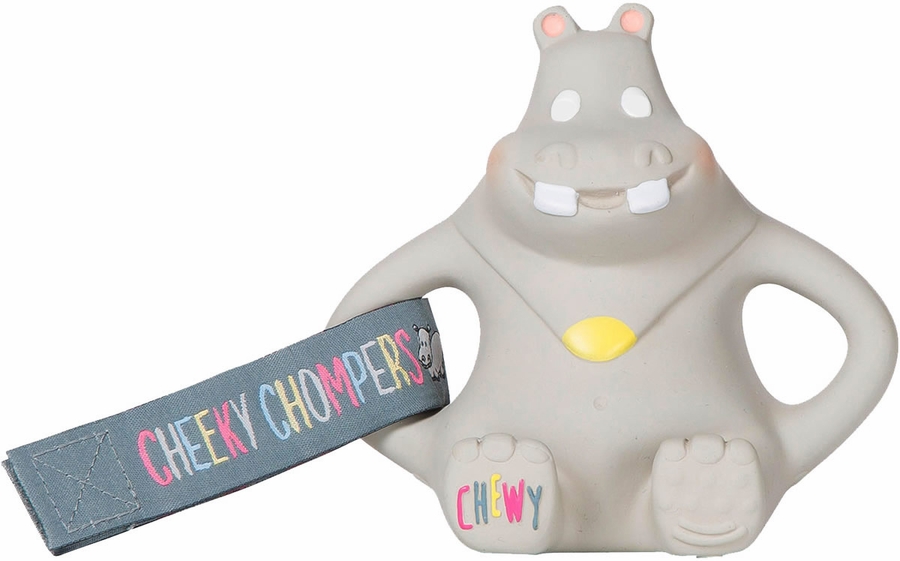 Chewy is not a choking hazard. Chewy’s hippo shape is specifically designed to prevent the possibility of your baby choking, while the textured surfaces of his head, feet and arms give baby lots of places to chomp on. His rounded handles are great for little hands to hold and are designed to help prepare your baby for using a sippy cup.