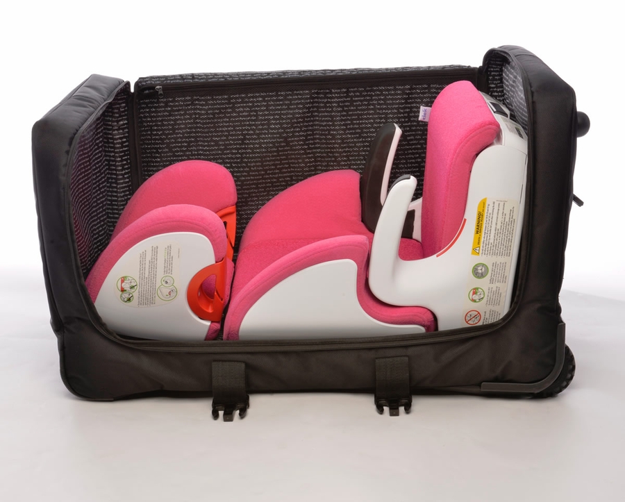 Weelee is Clek's universal travel bag designed to protect your car seat from damage while traveling. With two rugged wheels, a telescoping handle, luggage ID tag, thick layers of padding for optimal protection, plus a little extra room to stow extra vacation essentials. When not in use the bag folds flat for easy storage.