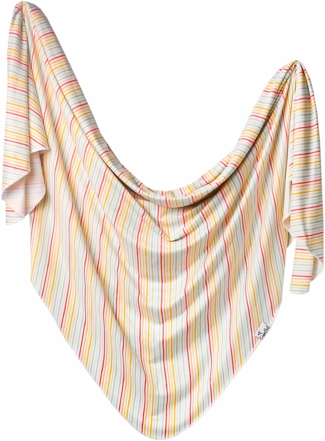 Very soft, stretchy, lightweight material that is perfect for swaddling. It is very generous in size, almost too large for swaddling a newborn but will grow with your child. Also wish the print/pattern was on both sides of the blanket instead of single sided. All in all, good product for the money. All of Copper Pearls products are amazing!