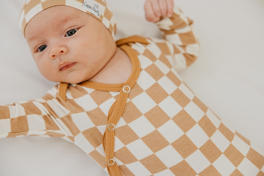 Trendy, High Quality Designs – At Copper Pearl we pride ourselves on making high quality products that always look great on babies, moms, or in your nursery. Our knotted gowns are simple, modern, and sure to elevate any baby’s style.