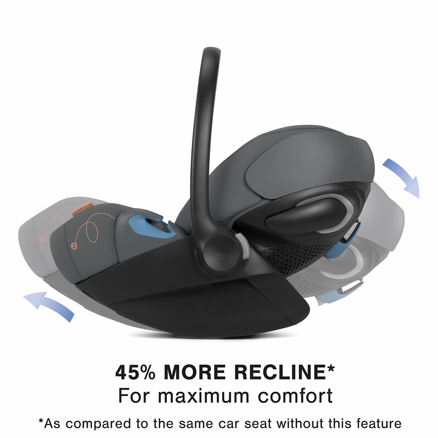The CYBEX Cloud G Lux Comfort Extend infant car seat has a full recline position and an extending leg rest for a comfortable and ergonomic position when used outside the vehicle. In addition, the one-click rigid LATCH install offers quick, simple, and safe installation in seconds while air ventilation channels in the car seat provide natural airflow to keep your child comfortable.