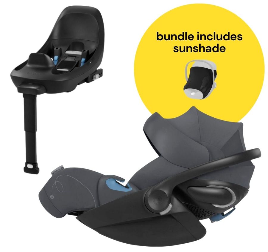 Cybex Cloud G Lux SensorSafe Comfort Extend Reclining Infant Car Seat + Sunshade Bundle - Lava Grey