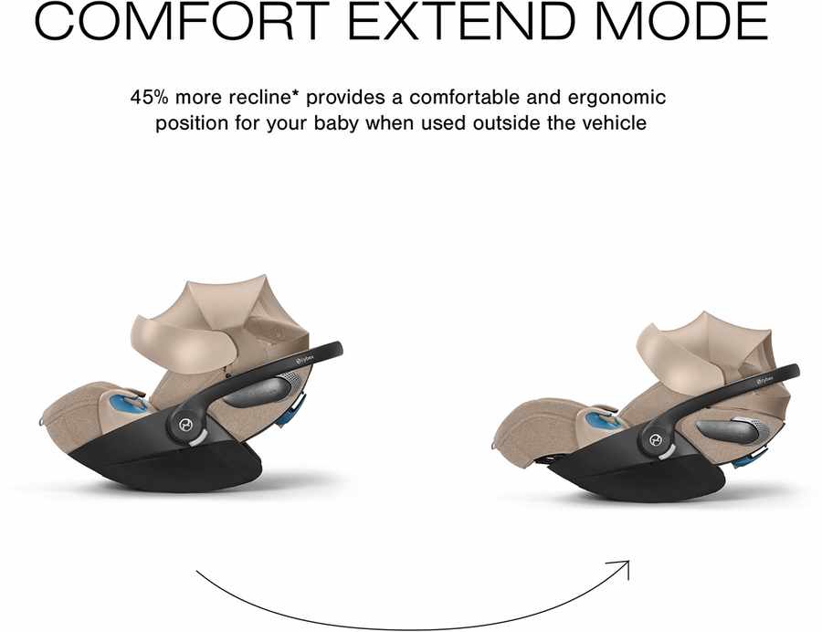 • COMFORT MODE: 45% more recline* for a comfortable and ergonomic position when used outside the vehicle