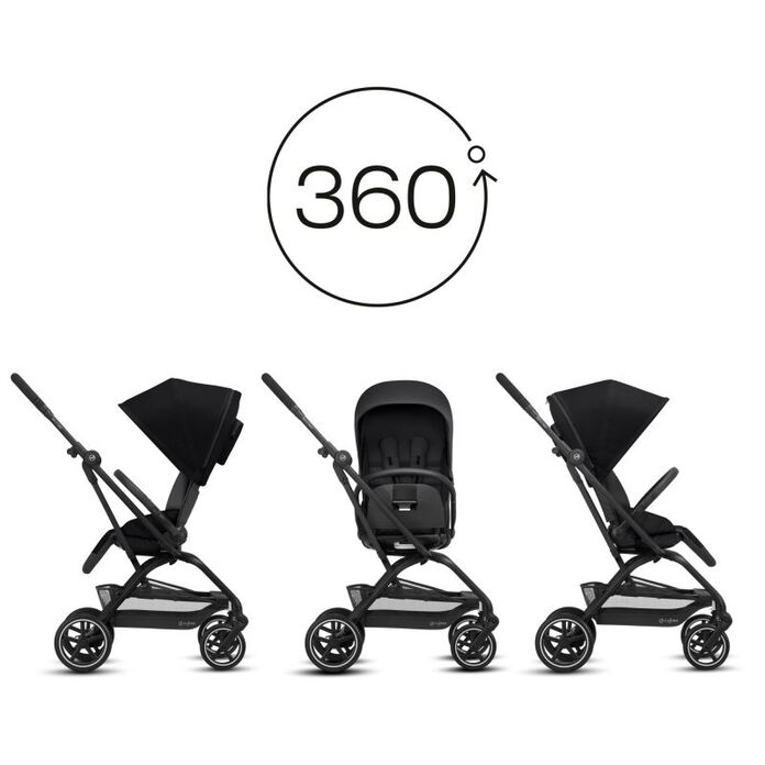 As an all-around urban stroller, the CYBEX Eezy S Twist+2 is the perfect choice for families who want a modern ride that makes travel faster, simpler and more enjoyable. With one hand, you can rotate your child’s seat 360°, from parent-facing to forward-facing in seconds. Ideal for the city lifestyle, the Eezy S Twist+2 folds into a compact, self-standing position, so you can stow and go. Travel with exceptional comfort and ease over a variety of surfaces with big, all-terrain wheels, all-wheel suspension and front-lock swivel wheels.