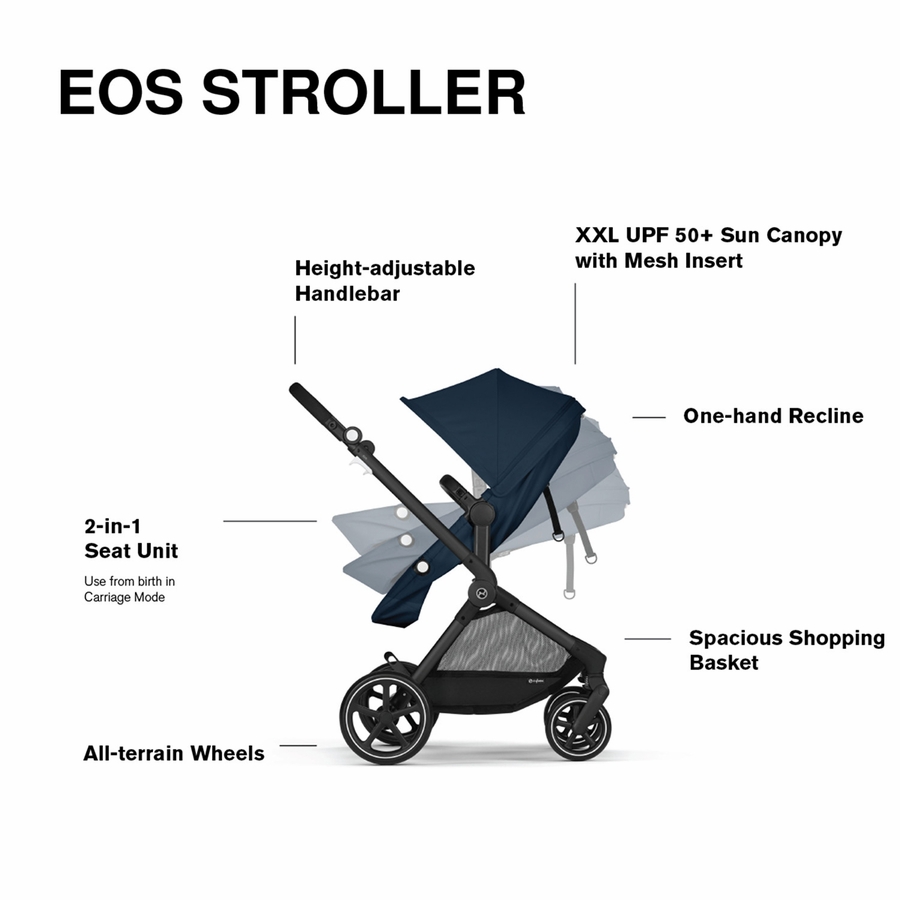 Discover the ultimate travel companion for your growing family with the CYBEX EOS Stroller + Aton G Infant Car Seat. This all-in-one solution ensures a seamless journey from birth, featuring a 2-in-1 seat that effortlessly transforms from a cozy newborn carriage to a reversible toddler seat, no extras needed. With advanced safety features, rugged all-terrain wheels, a front wheel suspension, and a spacious shopping basket, your family adventures just got easier and more enjoyable. Experience the effortless transition from driving to strolling today!