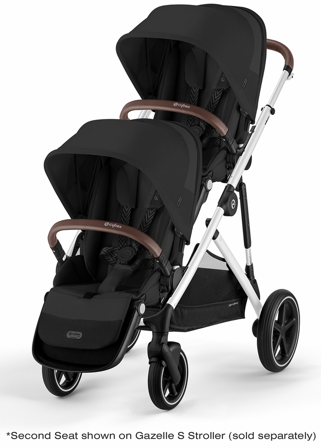 As your family grows, convert the Gazelle S from a single to a double stroller with a second full size seat to allow two children to ride at the same time. Each Gazelle S seat can be used in parent-facing or forward-facing mode and can be attached on either the stroller’s upper or lower positions.