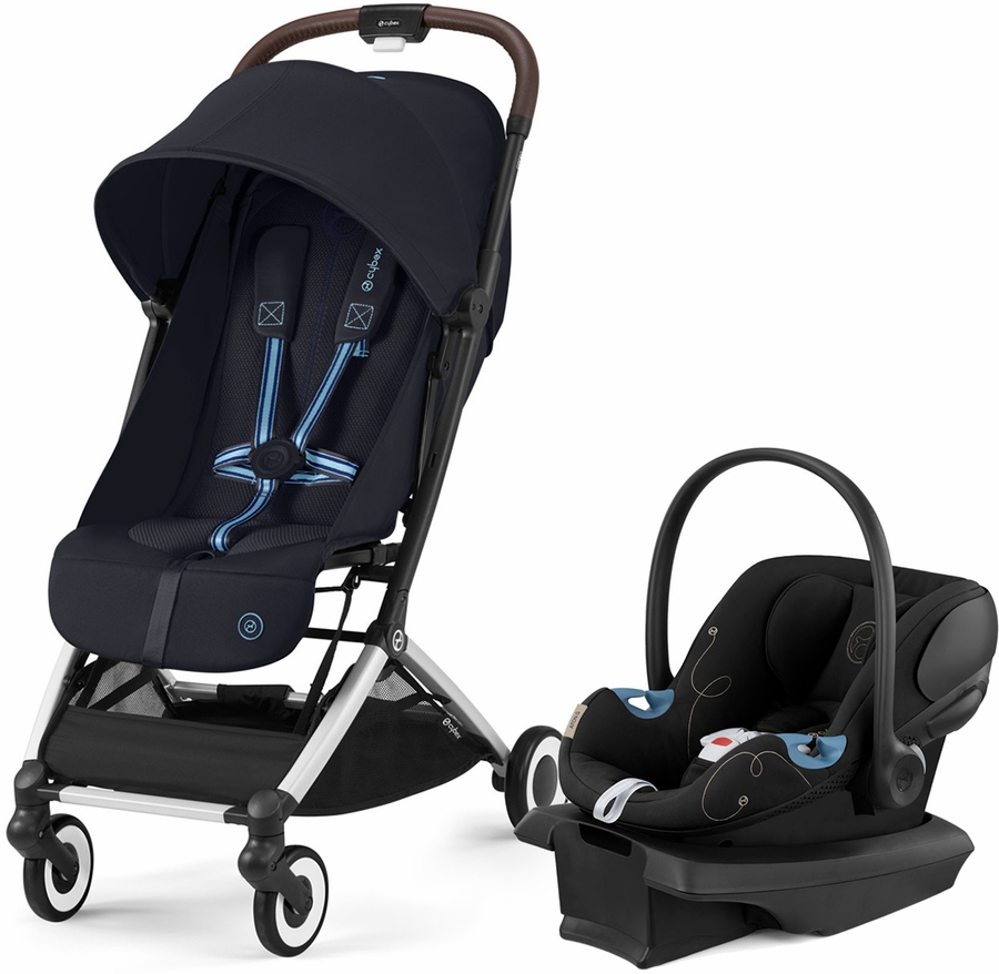 Cybex Orfeo Compact Stroller + Aton G SensorSafe Travel System Bundle - Dark Blue / Moon Black