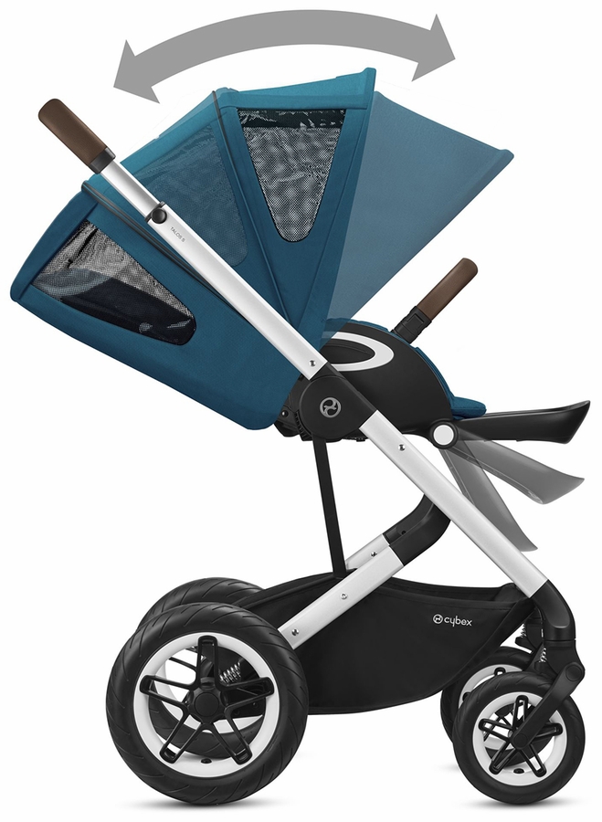 I received my Talos S about 2 weeks ago. And let me tell you, this is the best stroller out there by far!! We had Uppa Vista and my LO just turned 9mo and I wish I'd known about cybex before. If your child doesn't sleep on a walk - this's a must have! It reclines all the way flat and the canopy folds all the way down. The 4 wheel drive and suspension- omg you can't even feel a bump, smoother than you can imagine. Great purchase, it also comes with wind stopper (must have in the winter!), rain cover, car seat adapter and a cup holder - luxury compare to my Uppa. Cybex rocks!