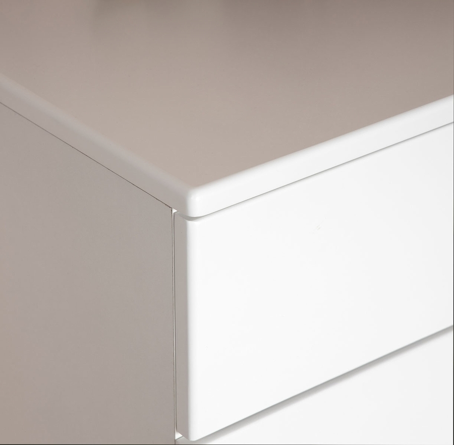 A beautiful place for everything: that’s the blissful magic of the 48” Bliss 6-drawer Dresser. Secure on its sturdy base of solid rubberwood legs, the Bliss dresser’s innovative drawer face design lends cheerful energy to its essential purpose - to provide ample storage for all of baby’s belongings in deep, smooth-gliding drawers. Pair with a changing table addition to save space in the nursery, or add this playful dresser to any room in your home that needs an infusion of organization and joy.