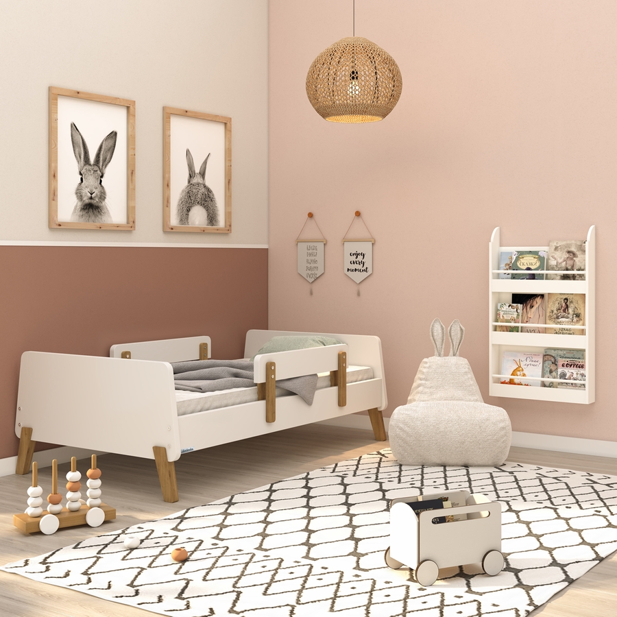 A sturdy bed built just for toddlers with playful curves and modern shapes to smooth the meaningful transition into “a real bed.” The low profile and two removable rails provide a safe and comfortable sleeping place that helps your active toddler easily get in and out of bed.