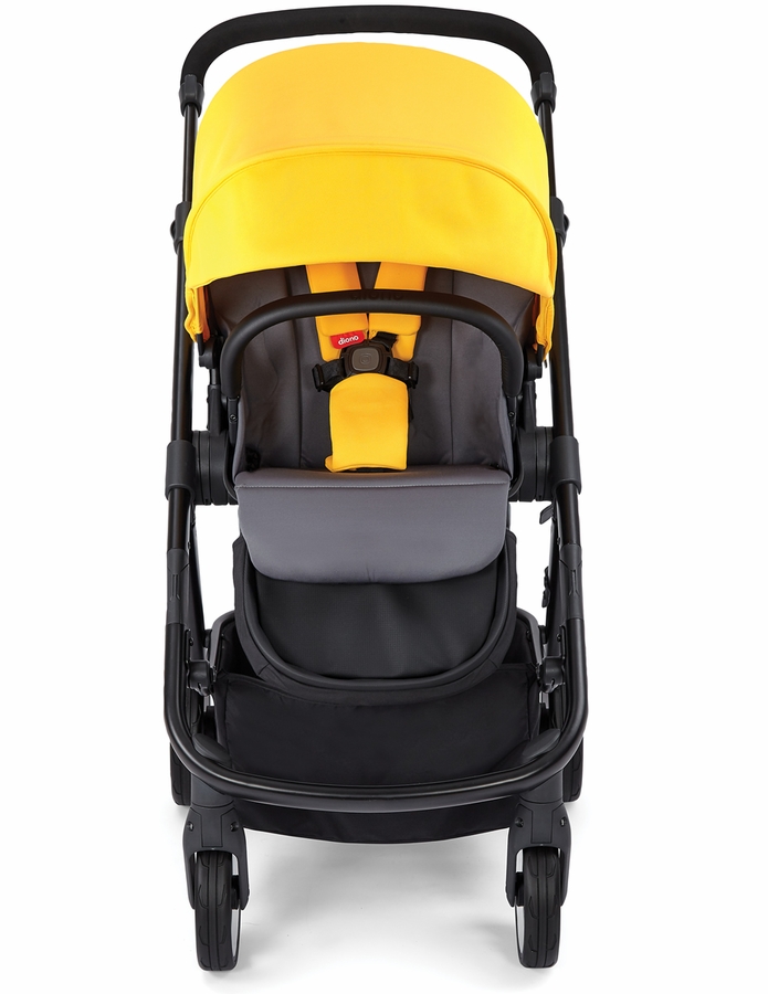 • Multi-position recline switches between world-facing and parent-facing in seconds