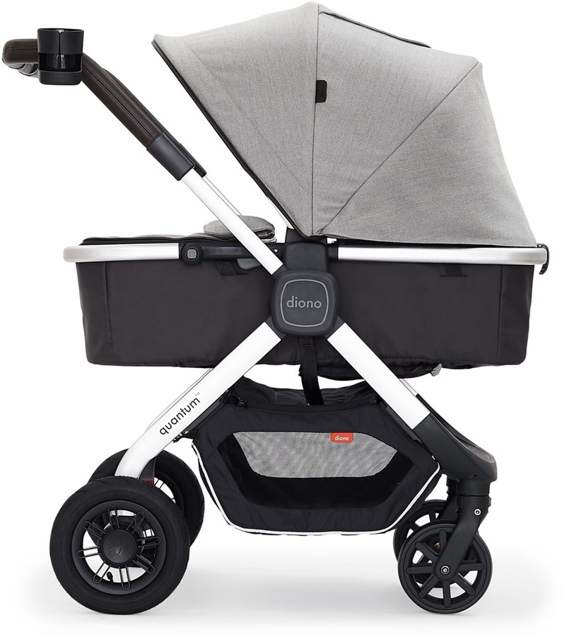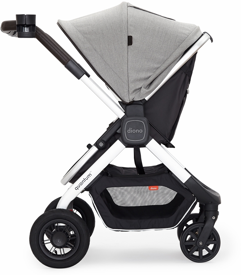 Lovingly engineered with an easy folding experience and an intelligent one-handed fold system, the Quantum Classic folds at your pace and unfolds with ease. Diono developed a "one step" brake, and a versatile smart seat, which is suitable from birth. They've made life simple with an easy to switch lie-flat carriage, which becomes a roomy toddler seat, so that little ones can see the world. A wonderful 4-tier "eclipse" canopy with air vents and UPF50 sunshade built in, included. With contemporary styling, innovative easy feel touch points and a multitude of ideas to make you smile - like a greate ride height, adjustable multiposition extendable handle, and a generous luggage friendly detachable basket. The Quantum was designed to be both resilient and robust, day in and day out, whatever the weather and for wherever life takes you. Diono thought of everything so that you don't have to...The classic version is appointed in a luxurious suited fabric, stitched leatherette handles and exquisite detailing, celebrating discrete luxury.