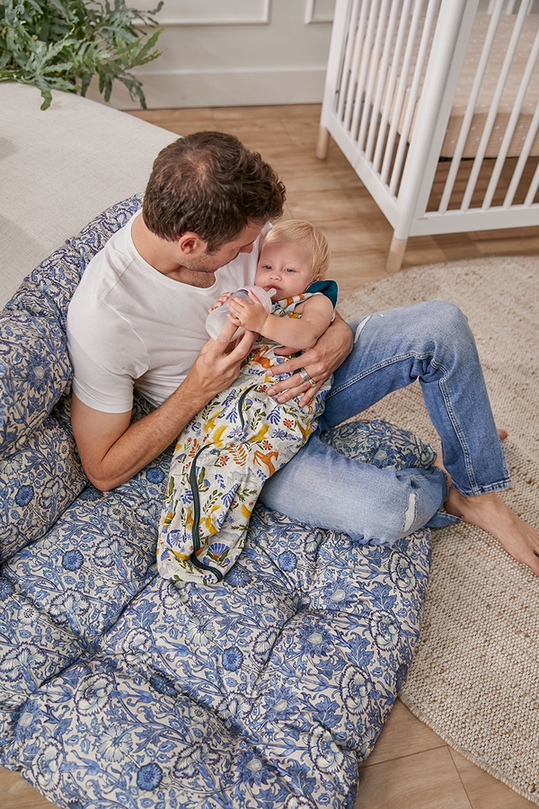 Keep your baby safe and secure at night with our smartly designed new wearable blanket. When worn over a onesie or pajamas, our sleep bags keep newborns and infants comfortably warm all night long. The side zipper makes diaper changes easy, while the shoulder snaps simplify the on and off process for parents. The stylish tulip shape helps baby’s legs remain loose. Our sleep bag is fully reversible so you can choose between a printed poplin side or a soft cozy solid knit side.
