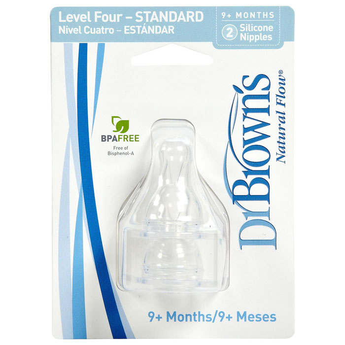 Replacement silicone nipple 2-packs for Dr. Brown's Natural Flow® baby bottles. Level-4 flow for older infants. All of our nipples are super-soft, made of high-grade silicone in Germany.