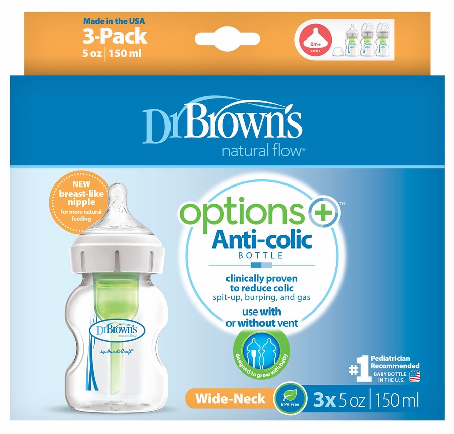 Your options have never been better with Dr. Brown’s Natural Flow® Options+™ Wide-Neck Bottle. From nipple to base, the Options+™ Wide-Neck Bottle makes for a comfortable feeding experience for baby and eases the transition from breast to bottle and back again. Starting at the top, the NEW breast-like nipple shape is correctly contoured for a proper latch and a more natural bottle feeding experience - perfect for switching from breast to bottle and back again! Each nipple is specially engineered to offer the same consistent, natural flow, so you and baby know what to expect in every feeding. Together with the anti-colic internal vent system, they offer a reliable and trusted bottle feeding experience that makes Dr. Brown’s the #1 pediatrician recommended bottle in the U.S.