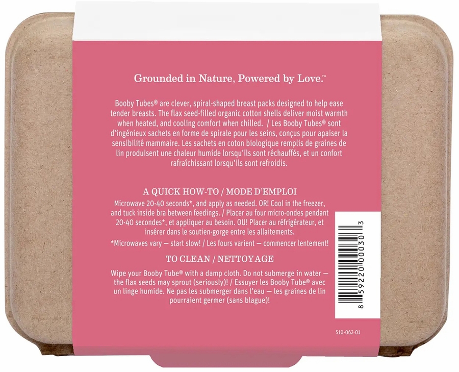 Warm hug or cooling comfort? Let your boobs decide! Earth Mama’s Booby Tubes® are innovative and safe breast packs to help with the common discomforts of breastfeeding. Completely gel-free to help reduce the risk of burns, each tube is a clever spiral-shaped organic cotton shell, filled with organic flax seed.