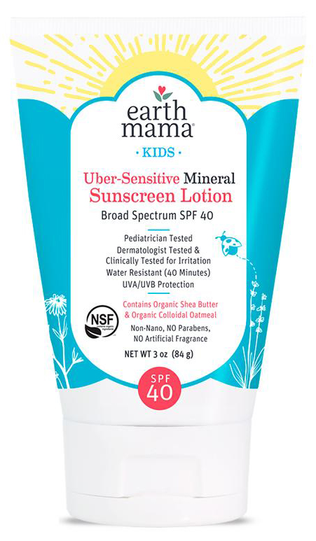 We wanted to be sure this was safe for the rashy-est of skin, so there’s plenty of calming organic colloidal oatmeal and organic shea butter in this creamy uber-sensitive mineral sunscreen lotion (as in way more than the amount of colloidal oatmeal than is required by the FDA to be in an eczema cream)! Thoughtfully formulated so that it’s non-irritating and gentle for sensitive skin, this is a reef-friendly, non-toxic, cruelty-free sunscreen with non-nano zinc — that sits on top of the skin rather than being absorbed, so it can scatter sun rays.