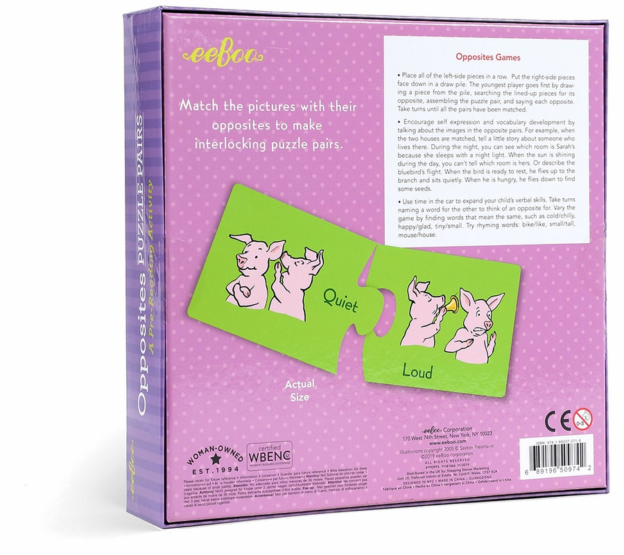 Up & down, big & little, match the opposites. Once a critical mass of words are recognized, preschoolers love to engage in word play. The elder person may select a puzzle piece with a bluebird flying up with the word UP. The tot searches for the one on which the bluebird flies DOWN, and assembles the puzzle pair. This play encourages critical thinking skills.