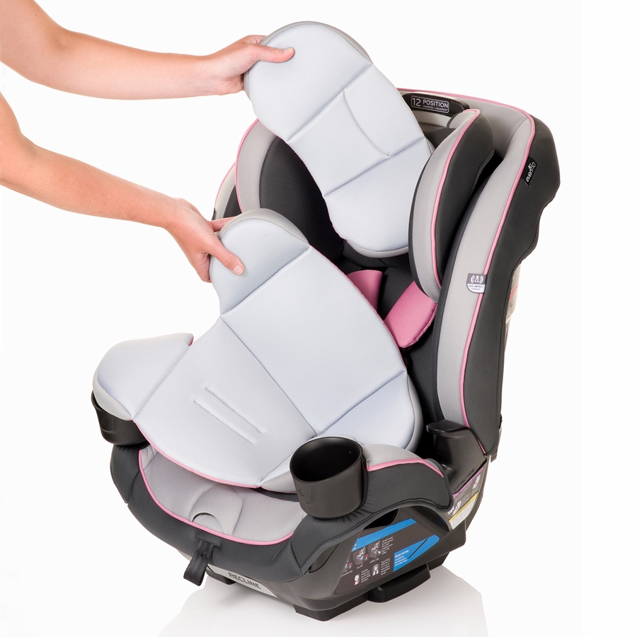 Evenflo works with parents to develop child-restraint products that are designed for how they are actually used. We’ve developed this 3-in-1 car seat with comfort, safety and ease-of-use in mind. The one-hand, 12-position headrest and no-rethread harness enable a proper fit during each ride and as child grows — without uninstalling the car seat. For additional convenience, this all-in-one car seat is designed with removable cushions, machine-washable fabrics, and two integrated cup holders.
