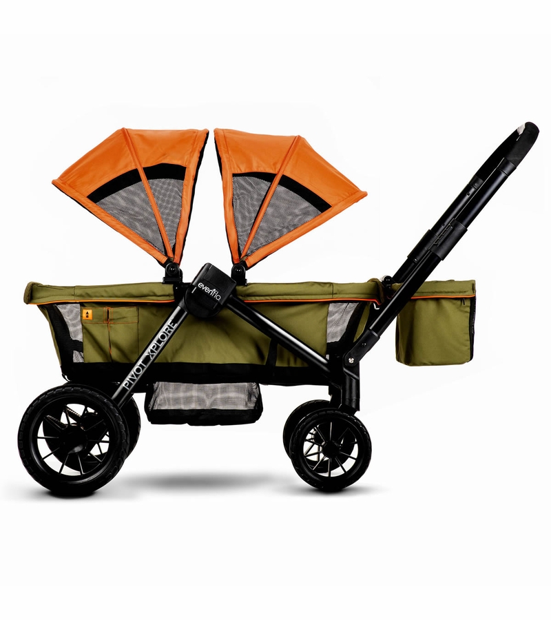 • VERSATILE MODULAR SEAT: With two kids in tow, the versatile second seat fits perfectly on the Evenflo® Pivot Xplore™ All-Terrain Stroller Wagon. It accommodates a child up to 55 lb at a secure, elevated level closer to you while still leaving plenty of room for a second rider below. Push or pull the Pivot Xplore with a flip of the handle without removing the second seat.