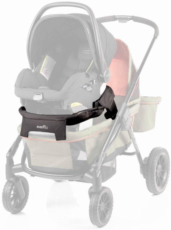 - FLEXIBILITY ON-THE-GO: With infant in tow, quickly and easily transition your infant car seat from car to the Evenflo® Pivot Xplore? using the car seat adapter. The elevated level keeps baby close while still leaving plenty of room for a second rider below.