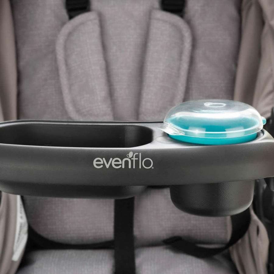Keep your kiddo happy on their next strolling adventure with space for snacks, toys, and a sippy cup right at their fingertips. The Stroller Child Snack Tray includes features you’ll love, like the unique angle of the tray helps your beginner eater to pick up finger foods. The included snack cup fits snuggly into both sides of the tray, so it stays put, and includes a clear lid so you can take a peek on what your child eats. The snack cup lid flips open and closed for quick access and to prevent spillage. You’ll also appreciate how easy the tray attaches and releases from the frame to get your child in an out of the stroller (but not so easy that your kid can do it alone). Cleanup is a cinch as both the tray and snack cup can wipe clean,or pop in the dishwasher on the top rack. Plus, they’re BPA free.