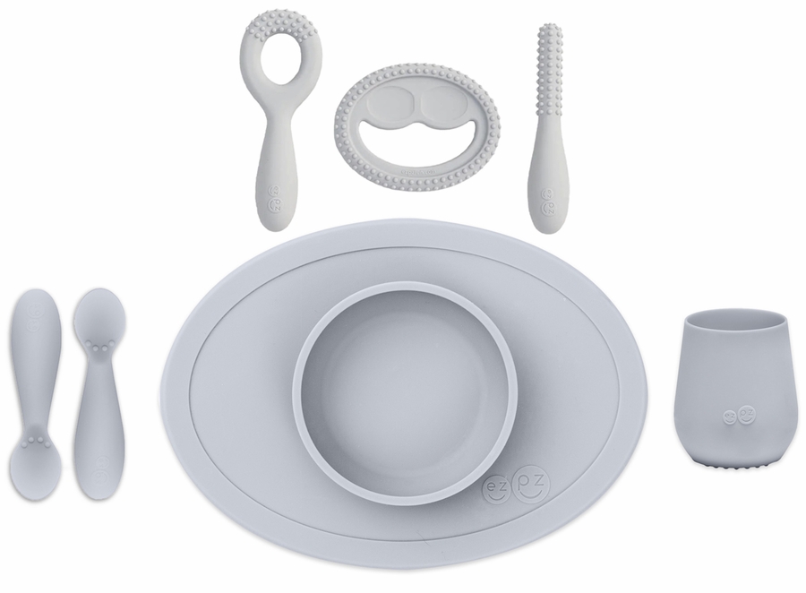 EZPZ Infant Bundle - First Foods Set + Oral Development Tools - Pewter