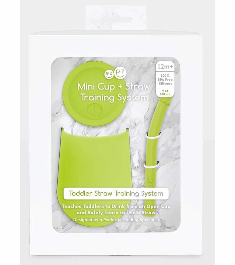 Learning to drink from a straw is an important developmental milestone that develops lip rounding and promotes speech development. The ezpz Mini Cup + Straw Training System teaches toddlers to drink from an open cup and safely learn to use a straw.