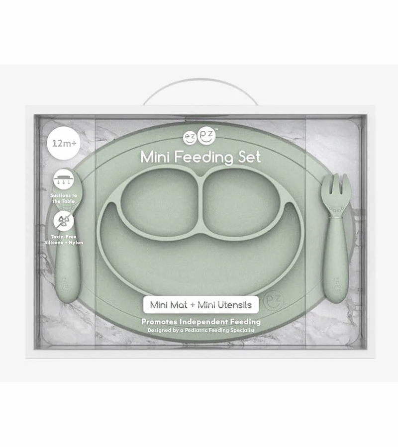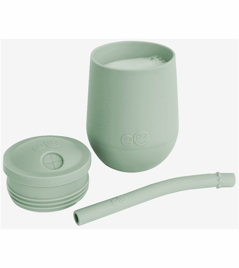 EZPZ Toddler Bundle - Mini Feeding Set + Mini Cup and Straw Training System - Sage