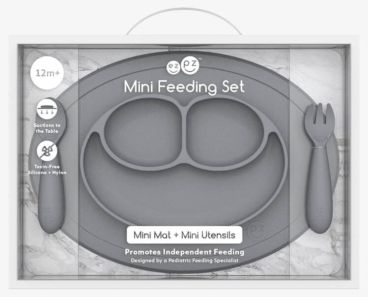 As your infant transitions to toddlerhood, they are ready to start practicing new mealtime milestones. They are eating a balanced meal with different food groups and are learning how to eat with a spoon (scooping) and fork (piercing). With the Mini Feeding Set (the Mini Mat, Mini Spoon and Mini Fork) ezpz provides all of the developmental tools you need for independent mealtime with your toddler.