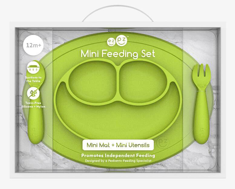 As your infant transitions to toddlerhood, they are ready to start practicing new mealtime milestones. They are eating a balanced meal with different food groups and are learning how to eat with a spoon (scooping) and fork (piercing). With the Mini Feeding Set (the Mini Mat, Mini Spoon and Mini Fork) ezpz provides all of the developmental tools you need for independent mealtime with your toddler.