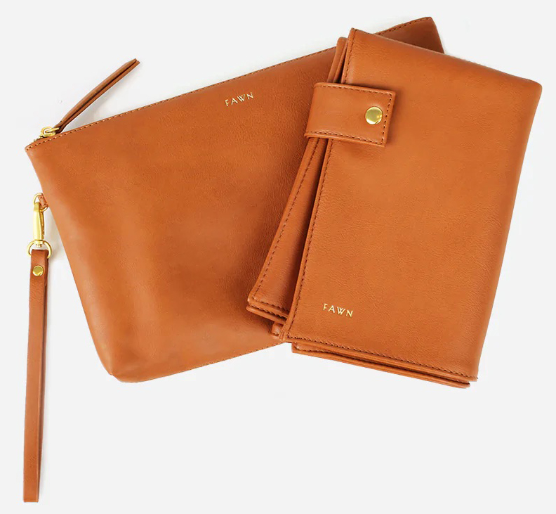 The Fawn Design Changing Clutch is a zippered premium matte faux leather clutch. It comes with a color-coordinated faux leather changing mat that folds up and fits inside the clutch. Toss the set in your Fawn Design bag so you’re ready for a diaper change anytime, anywhere. The sleek wristlet clutch is also great for travel, date night, and girl’s night out. The clutch holds all of your essentials like cash, cards, lipstick, etc., making it the perfect accessory. Included with the clutch: