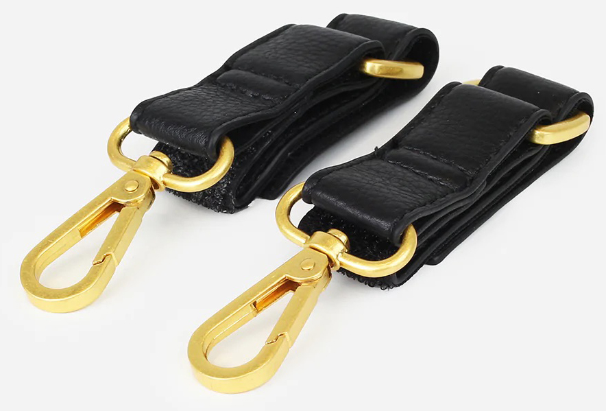 Motherhood means always being on the go! Fawn Design Stroller Hooks make it easy to stroll in style and bring your favorite Fawn Design bag along for the ride. The Velcro and premium faux leather straps fit most strollers, and the functional gold hooks allow you to easily attach your Fawn Design Original or Mini to your stroller, so all of your necessities are within reach.