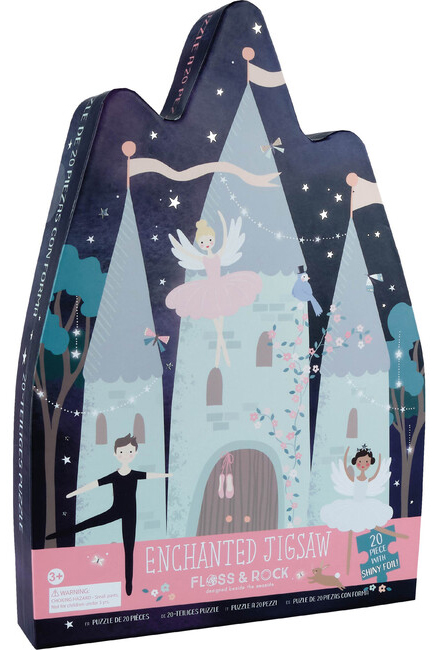 A Castle Shaped box and a Castle Shaped puzzle. Made up of 20 large size puzzle pieces, with a Castle, Ballet dancers & Fairies all set in the Enchanted Forest with Swans and a Lake. So much fun to make. Both the puzzle and the box feature shiny foiled details. Suitable for 3+.