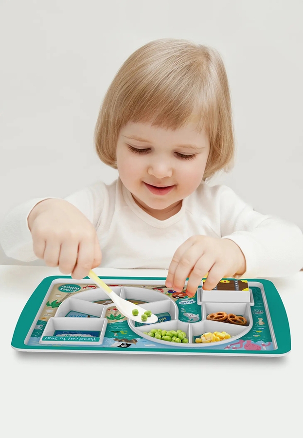 Take a culinary tour through the prehistoric past. This style of DINNER WINNER tray provides eat-as-you-go action that culminates in a hidden "surprise". Even the fussiest of eaters make it through a meal! Molded from BPA-free, 100% melamine, it's food-safe and dishwasher safe.